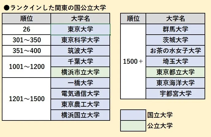関東の国公立大学では東京科学大学、筑波大学と続きます。