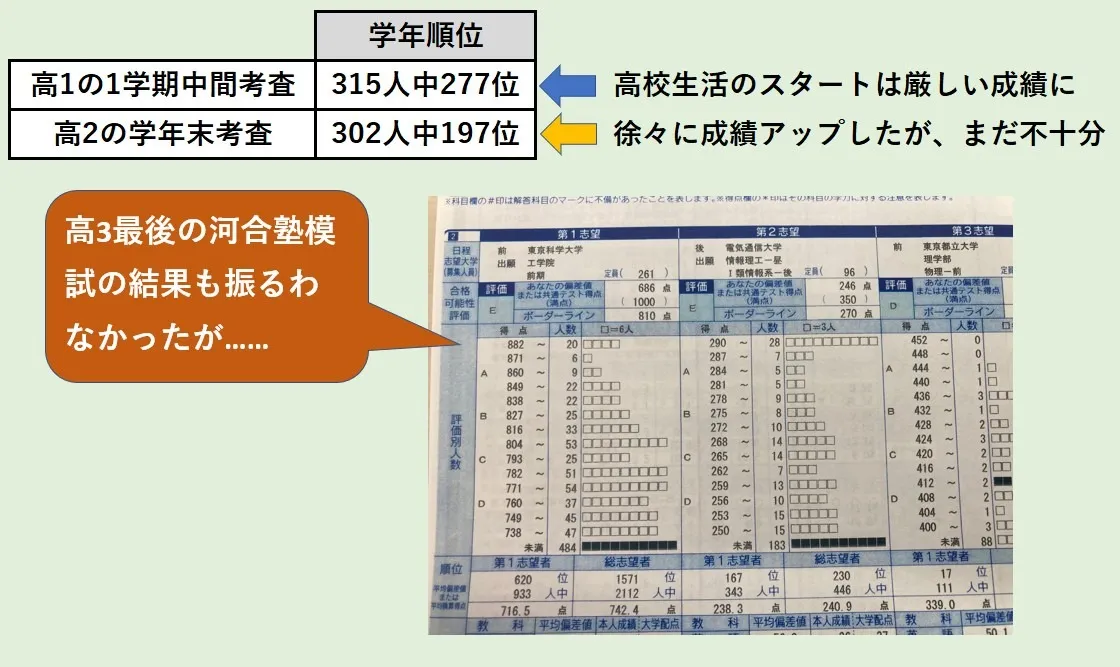 ただ、高校入学後の成績は散々な状況。